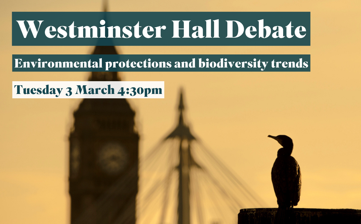This is a Westminster Hall debate on environmental protections and biodiversity trends, taking place on Tuesday 3 March, 4.30–5.30pm.